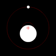The center of mass plays an important role in astronomy and astrophysics, where it is commonly referred to as the barycenter. The barycenter is the point between two objects where they balance each other; it is the center of mass where two or more celestial bodies orbit each other. When a moon orbits a planet, or a planet orbits a star, both bodies are actually orbiting a point that lies away from the center of the primary (larger) body.[22] For example, the Moon does not orbit the exact center of the Earth, but a point on a line between the center of the Earth and the Moon, approximately 1,710 km (1,062 miles) below the surface of the Earth, where their respective masses balance. This is the point about which the Earth and Moon orbit as they travel around the Sun. If the masses are more similar, e.g., Pluto and Charon, the barycenter will fall outside both bodies.