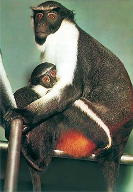 ومن قردة العالم القديم الضخمة تذكر القردة الملونة الإفريقية الماندريل.