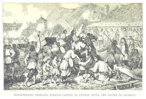 The bishopric of Zeta was elevated to a metropolitanate in Cetinje.[4] It was later to play an important part in both the religious and national life.[4] The Crnojević printing house, the first printing house in southeastern Europe, was active between 1493 and 1496 in Cetinje.[5] Zeta was first put under Ottoman rule in 1499, then annexed by the Ottomans in 1514, organized into the Sanjak of Montenegro.[6]