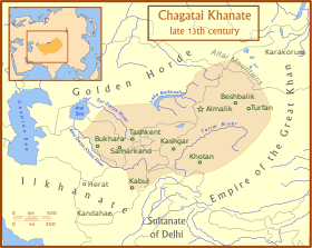 3. ^ Alternative spellings of Chagatai include Chagata, Chugta, Chagta, Djagatai, Jagatai, Chaghtai etc.