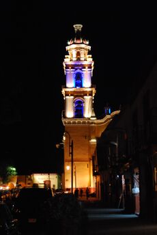 It is said that the city of Cholula has 365 churches, either one for each day of the year or one for each pre-Hispanic temple that used to be there.[17] In reality, there are only thirty seven churches; 159, if all the small chapels including those on local haciendas and ranches are counted.[8] One legend states that the first chapel to be built in Cholula was in the San Miguelito neighborhood on what is now the outskirts of the city. It was the first structure with a red tile roof, and it was dedicated to the Archangel Michael. It is said to have contained an image of the angel, which contained inside a small demon tied to a post. As people venerated the image of the archangel, they also acknowledged the demon, in case the angel decided not to hear their pleas. This eventually gave the chapel an evil reputation as more came to ask for favors from the demon, favors that one would not ask of a saint or angel. The demon began to be blamed for misfortunes that befell in the area, as, the legend said, when they occurred, the demon image would be found untied. Eventually, the image of the archangel with the demon inside was taken away and eventually disappeared.[18]