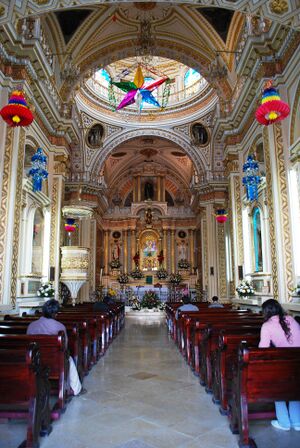 One other important church of the San Andrés municipality is the Church of Santa María Tonantzintla, which is valued for its decoration in what is called folk or indigenous Baroque.[8]