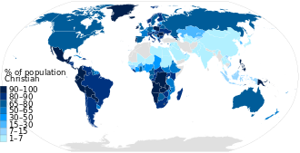 ![]() Christianity – Percentage of population by country (2014 data).[1] | |||||||||||||||
