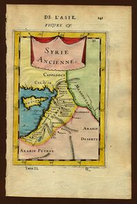 Next to these countries on the coast is Syria, once the greatest of lands. It had a multitude of divisions with different names, the part adjacent to Arabia was previously known as Palestine (who's northernmost city was Caesarea, Plin. NH 5.69: "Caesarea ..finis Palastine") or Judaea or Cœle.[31][32]