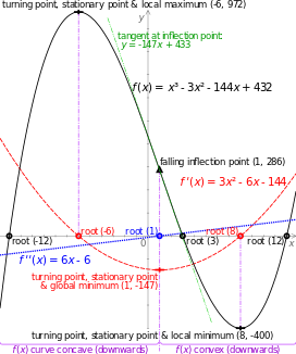 If b2 − 3ac > 0, then the cubic function has a local maximum and a local minimum. If b2 − 3ac = 0, then the cubic's inflection point is the only critical point. If b2 − 3ac < 0, then there are no critical points. In the cases where b2 − 3ac ≤ 0, the cubic function is strictly monotonic.