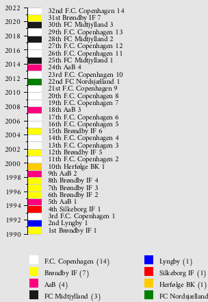 1991 | Brøndby IF | 26 | 18 | 10 | 6 | 2 | 26 | 15 | +11 |