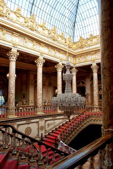 Dolmabahçe has the largest collection of Bohemian and Baccarat crystal chandeliers in the world. The famous Crystal Staircase has the shape of a double horseshoe and is built of Baccarat crystal, brass and mahogany.