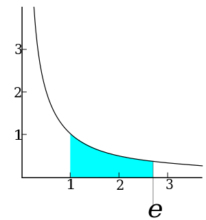 The area between the x-axis and the graph y = 1/x, between x = 1 and x = e is 1.