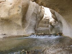 The boundary between Moab and Edom was the Zered, now called Wadi al-Hasa.[4] The ancient capital of Edom was Bozrah, now Busaira, Jordan.[5] According to the Book of Genesis, Esau's descendants settled in the land after they had displaced the Horites.[6] It was also called the land of Seir; Mount Seir appears to have been strongly identified with them and may have been a cultic site. According to biblical narrative, at the time of King Amaziah of Judah (838 BC), Selah was its principal stronghold,[7] Eilat and Ezion-Geber its seaports.[8]