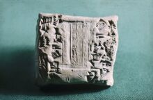 The modern idea of how the eduba functioned is based partially on descriptions from Sumerian literature (this is especially true of earlier scholarship - e.g., Sjöberg 1975,[9] Kramer 1949[10]). A number of stories are set in the scribal school or attest to what life was like as a scribal student. These are sometimes referred to by modern scholars as "eduba literature"[11][12] (not to be confused with a second meaning of this term- any composition learned and copied by scribal students) or "school stories."[13][14] They include the compositions "Schooldays" (Eduba A); "A Scribe and his Perverse Son" (Eduba B); "The Advice of a Supervisor to a Younger Scribe" (Eduba C); "Scribal Activities"(Eduba D); "Instructions of the Ummia" (Eduba E); and "Regulations of the E-duba" (Eduba R). A few Sumerian dialogues also touch on elements of student life, including "A Dialogue Between Two Scribes" (Dialogue 1); "A dialogue between Enki-hengal and Enkita-lu" (Dialogue 2); and Enki-manshum and Girini-isag (Dialogue 3). Several royal hymns, recounting the exploits of Mesopotamian kings, also make reference to the institution of the eduba; these include the compositions Šulgi B; Lipit-Ešter B; Išme-Dagan V; and Enlil-Bani A.[15] Several Old Babylonian letters[16] and proverbs[17] also allude to scribal education or the eduba.