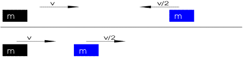 وعلى سبيل المثال، إذا كانت لدينا كرتان مختلفتي الكتلة Ball 1 و Ball 2 ومختلفتي السرعة ، قبل التصادم: