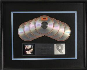 Clapton's grief was expressed in the song "Tears in Heaven", which was co-written by Will Jennings.[86][87] At the 35th Annual Grammy Awards, Clapton received six Grammys for the single "Tears in Heaven" and his Unplugged album,[88] for which Clapton performed live in front of a small audience on 16 January 1992 at Bray Film Studios in Windsor, Berkshire, England. The album reached number one on the Billboard 200, and is certified Diamond by the RIAA for selling over 10 million copies in the US.[89] It reached number two in the UK Albums Chart and is certified four times platinum in the UK.[90] On 9 September 1992, Clapton performed "Tears in Heaven" at the 1992 MTV Video Music Awards, and won the award for Best Male Video.[91][92]