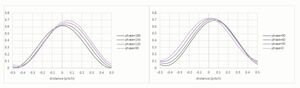 يُظهر امتداد الحالة المكونة من خطين إلى شبكة تتكون من العديد من الخطوط الأفقية حساسية مماثلة لعدم الوضوح.[95]يتجلى ذلك في اختلاف CD بين خطوط الحافة العلوية والسفلية لمجموعة من 11 خطاً أفقياً. يسرد الجدول أدناه اختلاف CD الذي يزيد عن مدى تركيز 100 nm تحت إضاءة الكوازار (سيتم وصف إضاءة الكوازار في القسم الخاص بالإضاءة المثلى مقابل الخطوة).