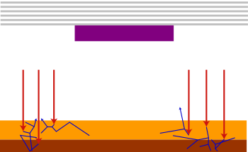 يؤدي الوقوع المائل في نظام بصري عاكس إلى تأثيرات التظليل في وجود ممتص القناع. على سبيل المثال، سيظهر جانب واحد (خلف الظل) أكثر إشراقاً من الآخر (داخل الظل).[91]