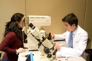 An eye examination is a series of tests performed to assess vision and ability to focus on and discern objects. It also includes other tests and examinations pertaining to the eyes. Eye examinations are primarily performed by an optometrist, ophthalmologist, or an orthoptist. Health care professionals often recommend that all people should have periodic and thorough eye examinations as part of routine primary care, especially since many eye diseases are asymptomatic.