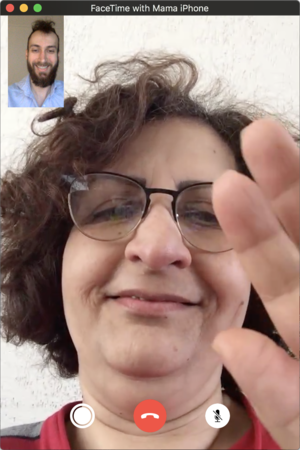 شاشة هاتف آيفون أثناء المكالمة، يظهر زر فيس تايم (باللون الداكن، الزر الأوسط في الصف السفلي).