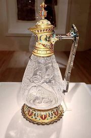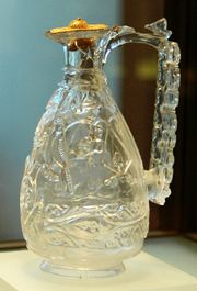 أبريق من الكريستال الصخري من كاتدرائية سان دوني، بغطاء مزركش من الذهب الإيطالي، اللوڤر.