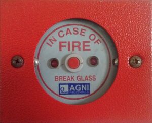- الأجهزة التي تُشغل يدوياً; تُعرف أيضاً باسم صناديق إنذار الحريق، ومحطات السحب اليدوية، أو ببساطة محطات السحب، ومحطات كسر الزجاج، و(في أوروبا) نقاط الاتصال. تُثبت أجهزة التنشيط اليدوي لإنذار الحريق ليُحدد موقعها بسهولة (بالقرب من المخارج) وتحديدها وتشغيلها. عادة ما يتم تشغيلها عن طريق التفاعل الجسدي، مثل سحب رافعة أو كسر الزجاج.