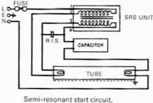 وهناك ثلاثة أنواع من دوائر المصباح الفلوري هي:
