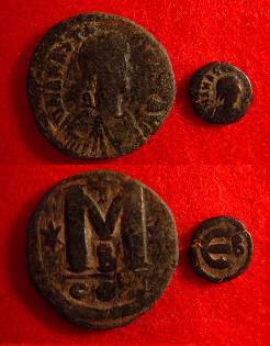 The follis was reintroduced as a large bronze coin (40 nummi) in 498, with the coinage reform of Anastasius, which included a series of bronze denominations with their values marked in Greek numerals. A 40 nummi coin of Anastasius is depicted on the obverse of the Macedonian 50 denars banknote, issued in 1996.[3]