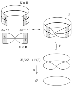The frame bundle can be given a natural topology and bundle structure determined by that of . Let be a local trivialization of . Then for each x ∈ Ui one has a linear isomorphism . This data determines a bijection