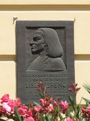 لوحة تذكارية على قصر ليوپولد ده پولي في براستيسلاڤا، حيث أدى ليست عزفاً عناك عام 1820، وكان في سن التاسعة.