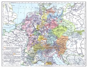 Prior to his imperial coronation, he was duke of the Inner Austrian lands of Styria, Carinthia and Carniola from 1424, and also acted as regent over the Duchy of Austria from 1439. He was elected and crowned King of Germany in 1440.[1] His reign of 53 years is the longest in the history of the Holy Roman Empire or the German monarchy. Upon his death in 1493 he was succeeded by his son Maximilian.
