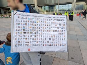 In articles published in November 2023 in The Lancet and in February 2024 in the journal BMJ Global Health, multiple doctors detailed how, in their professional opinions, the targeting of Gazan health infrastructure and medical personnel coupled with various Israeli politicians' openly genocidal rhetoric amounts to genocide.[167] Legal scholars have also supported this assessment.[168][169] Gaza's healthcare system faced several humanitarian crises as a result of Israel's assault: hospitals faced a lack of fuel[170] and began shutting down by 23 October as they ran out of fuel.[171] When hospitals lost power completely, multiple premature babies in NICUs died.[172][173][174] Israeli airstrikes have killed numerous medical staffers, and ambulances, health institutions, medical headquarters, and hospitals have been destroyed.[175] Médecins Sans Frontières reported that scores of ambulances and medical facilities were damaged or destroyed,[176][177] including the deaths of Médecins Sans Frontières staff.[178][179] In late October, the Gaza Health Ministry said the healthcare system had "totally collapsed".[180]