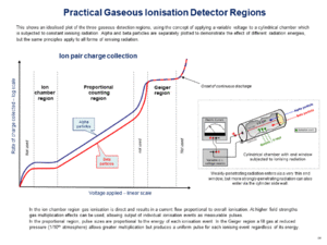 It is a gaseous ionization detector and uses the Townsend avalanche phenomenon to produce an easily detectable electronic pulse from as little as a single ionizing event due to a radiation particle. It is used for the detection of gamma radiation, X-rays, and alpha and beta particles. It can also be adapted to detect neutrons. The tube operates in the "Geiger" region of ion pair generation. This is shown on the accompanying plot for gaseous detectors showing ion current against applied voltage.