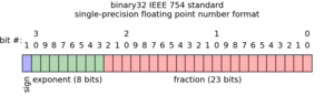 As shown in the adjacent figure, the standard binary encoding of a 32-bit floating point number is a combination of a binary encoded integer and a binary encoded fraction, beginning at the most significant bit with