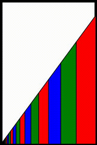 Alternatively, a geometric interpretation of the convergence is shown in the adjacent diagram. The area of the white triangle is the series remainder = s − sn = arn+1 / (1 − r). Each additional term in the partial series reduces the area of that white triangle remainder by the area of the trapezoid representing the added term. The trapezoid areas (i.e., the values of the terms) get progressively thinner and shorter and closer to the origin. In the limit, as the number of trapezoids approaches infinity, the white triangle remainder vanishes as it is filled by trapezoids and therefore sn converges to s, provided |r|<1. In contrast, if |r|>1, the trapezoid areas representing the terms of the series instead get progressively wider and taller and farther from the origin, not converging to the origin and not converging as a series.