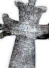 In most Asomtavruli letters, straight lines are horizontal or vertical and meet at right angles. The only letter with acute angles is Ⴟ (jani). There have been various attempts to explain this exception. Georgian linguist and art historian Helen Machavariani believes jani derives from a monogram of Christ, composed of Ⴈ (ini) and Ⴕ (kani).[31] According to Georgian scholar Ramaz Pataridze, the cross-like shape of letter jani indicates the end of the alphabet, and has the same function as the similarly shaped Phoenician letter taw (), Greek chi (Χ), and Latin X,[32] though these letters do not have that function in Phoenician, Greek, or Latin.
