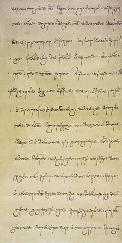 From the 9th century, Nuskhuri script started becoming dominant, and the role of Asomtavruli was reduced. However, epigraphic monuments of the 10th to 18th centuries continued to be written in Asomtavruli script. Asomtavruli in this later period became more decorative. In the majority of 9th-century Georgian manuscripts which were written in Nuskhuri script, Asomtavruli was used for titles and the first letters of chapters.[28] However, some manuscripts written completely in Asomtavruli can be found until the 11th century.[29]