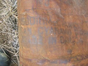 Sodium cyanide drum at the abandoned Chemung Mine in Masonic, California