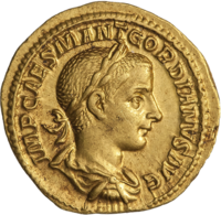 1. ^ في اللاتينية الكلاسيكية، Gordian's name would be inscribed as MARCVS ANTONIVS GORDIANVS PIVS AVGVSTVS.