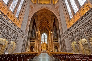 In spite of this, the Gothic Revival continued to exert its influence, simply because many of its more massive projects were still being built well into the second half of the 20th century, such as Giles Gilbert Scott's Liverpool Cathedral[176] and the Washington National Cathedral (1907–1990).[177] Ralph Adams Cram became a leading force in American Gothic, with his most ambitious project the Cathedral of St. John the Divine in New York (claimed to be the largest cathedral in the world), as well as Collegiate Gothic buildings at Princeton University.[178] Cram said "the style hewn out and perfected by our ancestors [has] become ours by uncontested inheritance".[179]