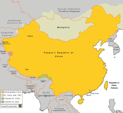 الصين الكبرى Greater China أو منطقة الصين الكبرى هو مصطلح يُستخدم للإشارة إلى بر الصين الرئيسي وهونگ كونگ ومكاو وتايوان.[1] كـ "مصطلح اللحظة"، فإن المعنى الدقيق غير واضح بالكامل، الناس قد يستخدمونه فقط للروابط التجارية أو فقط للأحداث الثقافية. The term is not specifically political in usage; ties common between the geographical regions, for instance Chinese-language television, film and music entertainment is commonly attributed to be a cultural aspect of "Greater China".[2][3] The term is also used with reference to business/economic development, such as Focus Taiwan reporting on "economic integration in the Greater China region".[4] Usage of the term may also vary as to the geographic regions it is meant to imply.