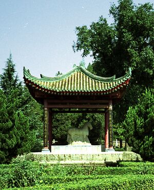 The statue Horse Stepping on a Xiongnu Soldier (馬踏匈奴), dated to the Western Han period, from the tomb of General Huo Qubing near present-day Xi'an