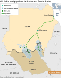 حقول وأنابيب النفط في السودان وجنوب السودان.