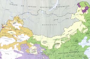 Ethnolinguistic map 1967, centered on Helan mountains - which listed as falling within region where Oirat spoken (but see also Alasha dialect).