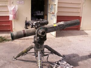 In 1993, Hezbollah engaged in a seven day period of intensified fighting with Israel, which resulted in enormous damage to Lebanese infrastructure and civilians but little lasting military harm to either Hezbollah or Israel.[54] The conflict saw the first major use of unguided Katyusha rockets fired onto IDF occupied Israeli areas by Hezbollah, a tactic used by the PLO a decade before and became a defining practice of Hezbollah in the future.[33] Hezbollah used its first AT-3 Sagger anti-tank guided missile (ATGM) in September 1992 and used its first AT-4 Spigot missiles in 1997, the same year, Hezbollah acquired the powerful American TOW ATGM.[32] The anti-tank weaponry used by Hezbollah steadily increased in quality over the duration of the insurgency.[50] By 1998, Hezbollah had destroyed three Merkava Mk 3 main battle tanks with these missiles.[55]