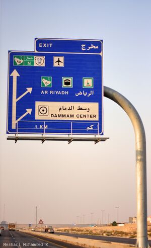 Highway 40 (العربية: الطريق السريع ٤٠) is a major east–west six-lane controlled-access highway in Saudi Arabia, connecting Jeddah, the second-largest city in the kingdom, to the economically prosperous and oil-rich Eastern Province, making it the kingdom's only coast-to-coast highway. The highway runs in a northeast–southwest direction, traversing the width of the entire Arabian Peninsula. Being part of the Saudi road network, Highway 40 carries the Arab Mashreq Route 80M (Jeddah–Mecca–Riyadh–Dammam–Manama).[3] The highway spans 1,395 km (867 mi) between Jeddah (at the interchange with Highway 5 near Prince Abdullah Al Faisal Stadium) and Dammam at the interchange with Highway 613; via Riyadh. The route serves Mecca via the Umm al-Qura' Road, Ta'if via Highway 287 and Highway 267, Riyadh via Highway 522, Hofuf via Highway 75, Buqayq via Highway 607, and Khobar and Dhahran via Highway 95.[1][4][5][6]