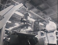 The Rancho Arm was developed as a robotic arm to help handicapped patients at the Rancho Los Amigos Hospital in Downey, California; this computer-controlled arm was bought by Stanford University in 1963.[66] In 1967 the first industrial robot was put to productive use in Japan. The Versatran robot had been developed by American Machine and Foundry. A year later a hydraulic robot design by Unimation was put into production by Kawasaki Heavy Industries.[67] Marvin Minsky created the Tentacle Arm in 1968; the arm was computer-controlled and its 12 joints were powered by hydraulics.[66] In 1969 Mechanical Engineering student Victor Scheinman created the Stanford Arm, recognized as the first electronic computer-controlled robotic arm because the Unimate's instructions were stored on a magnetic drum.[66]