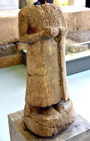 Early Assur was probably a local religious and tribal center and must have been a town of some size since it had monumental temples.[21][22][23] It was located in a highly strategic location, on a hill overlooking the Tigris river, protected by a river on one side and a canal on another.[17] Surviving archaeological and literary evidence has been suggested by some historians that Assur in its earliest history may have been inhabited by Hurrians as well as Semitic ancestors of the Assyrians, although others reject this hypothesis. [13][24] Assur was the site of a fertility cult devoted to the Assyrian-Akkadian goddess Ishtar.[25] The earliest known archaeological finds at the site are Early Dynastic-age temples dedicated to Ishtar. These temples and the artifacts within them also show considerable similarities to temples and artifacts from Sumer in southern Mesopotamia, which might suggest that there was also a group of Sumerians living in the city,[26] that it at some point was conquered by an unknown Sumerian ruler or simply be an exampme of the melding of Sumerian and Akkadian speaking culture in Mesopotamia.[27] The East Semitic-speaking ancestors of the later Assyrians settled in Mesopotamia at some point during the 35th and 31st century BC, either assimilating[13] or displacing the previous population. The earliest Assyrian king named Tudia appears to have lived in the mid 25th century BC.[24]