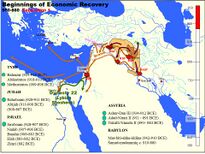 Ashur-nirari V was succeeded by Tiglath-Pileser III (ح. 745–727 BC), probably his brother and generally assumed to have usurped the throne.[123][124] Tiglath-Pileser's accession ushered in a new age of the Neo-Assyrian Empire;[125] while the conquests of earlier kings were impressive, they contributed little to Assyria's full rise as a consolidated empire.[126] Through campaigns aimed at outright conquest and not just extraction of seasonal tribute, as well as reforms meant to efficiently organize the army and centralize the realm, Tiglath-Pileser is by some regarded as the first true initiator of Assyria's "imperial" phase.[109][127] Tiglath-Pileser is the earliest Assyrian king mentioned in the Babylonian Chronicles and in the Hebrew Bible and thus the earliest king for which there exists important outside perspectives on his reign.[128] Early on, Tiglath-Pileser reduced the influence of the powerful magnates.[128] Tiglath-Pileser campaigned in all directions with resounding success. His most impressive achievements were the conquest and vassalization of the entirety of the Levant all the way to the Sinai and Egyptian border, his domination of the Persians and Medes to the east, the Arabs to the south of Babylonia, and the 729 conquest of Babylonia, after which he and later Assyrian kings often ruled as both "king of Assyria" and "king of Babylon". By the time of his death in 727 BC, Tiglath-Pileser had more than doubled the territory of the empire. His policy of direct rule rather than rule through vassal states brought important changes to the Assyrian state and its economy; rather than tribute, the empire grew more reliant on taxes collected by provincial governors, a development which increased administrative costs but also reduced the need for military intervention. Also noteworthy was the large scale in which Tiglath-Pileser undertook resettlement policies, settling tens, if not hundreds, of thousand foreigners in both the Assyrian heartland and in far-away underdeveloped provinces.[129]