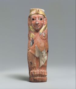 Beginning in the fourteenth century and lasting into the twelfth century, this period saw even more creation of large-scale relief sculpture, and figures represented tend to be more solid, with thicker proportions.[2] Much of the art found from the Hittite New Kingdom era comes from the settlement of Alaca Höyük. It is unclear which ancient city this correlates to, however it has been argued that it could be Tawiniya, Arinna, Hanhana, or Zippalanda. The most common opinion among scholars is that it is the holy city of Arinna, because of its proximity to the capital of Hattusa and the ritual practices depicted in art there.[4]