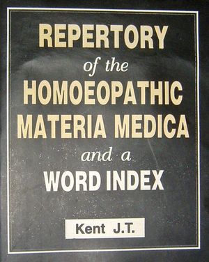 The first symptomatic index of the homeopathic materia medica was arranged by Hahnemann. Soon after, one of his students Clemens von Bönninghausen, created the Therapeutic Pocket Book, another homeopathic repertory.[87] The first such homeopathic repertory was Georg Jahr's Symptomenkodex, published in German (1835), which was then first translated to English (1838) by Constantine Hering as the Repertory to the more Characteristic Symptoms of Materia Medica. This version was less focused on disease categories and would be the forerunner to Kent's later works.[47][88] It consisted of three large volumes. Such repertories increased in size and detail as time progressed.