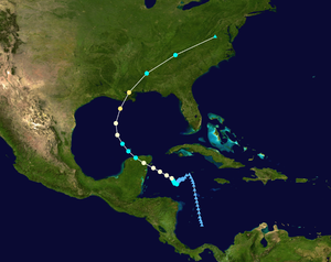 المناطق المتأثرة | جزر كايمان، جامايكا، أمريكا الوسطى، شبه جزيرة يوكاتان، ساحل خليج الولايات المتحدة، جنوب شرق الولايات المتحدة، وسط الأطلنطي |