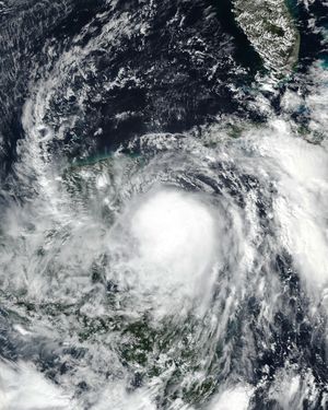 ![]() الإعصار زيتا قبل أن يصل لذروته ويصل أراضي جنوب شرق لويزيانا، 28 أكتوبر. | |