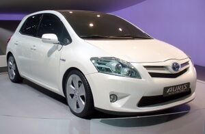 Mass production of the 2011 Toyota Auris Hybrid began in May 2010 at Toyota Manufacturing UK (TMUK) Burnaston plant and became the first mass-produced hybrid vehicle to be built in Europe.[83] Sales in the UK began in July 2010, at a price starting atقالب:£ (US$27٬450), قالب:£ (US$800) less than the Toyota Prius.[86][87] The 2011 Auris Hybrid shares the same powertrain as the Prius, and combined fuel economy is 74.3 mpg‑imp (3.80 L/100 km; 61.9 mpg‑US).[88][89]